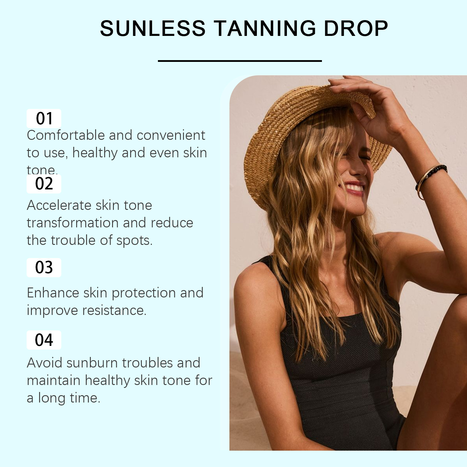Our tanning drops (in the mouth) are carefully blended with peppermint extract and Chinese medicine extract. Designed to enhance skin resistance and protect against environmental damage. It is very easy to use: Shake well before taking, 1-2 drops each time, 1-2 times a day. And can enhance the skin resistance, keep the skin healthy.